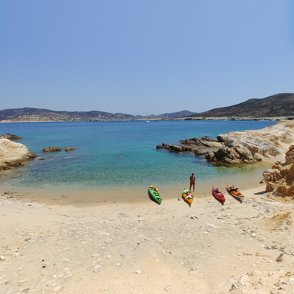 Where shall we meet and at what time? You will receive a GPS location with the meeting point the day before the tour. Meeting time for the day trips is 09:30. Meeting time for the sunset tour is usually two and a half hours prior to sunset. Can I join one of your tours without previous experience? Definitely, previous experience is not required and beginners are welcome on all our tours. Your guide will give you an instructional briefing regarding the paddling technique and how to control your kayak. Is Sea kayaking a safe activity and what is your safety record? In general Sea kayaking is safer than most outdoor activities. Our guides are well trained and certified specifically for Sea kayaking. They will be watching you at all times during the trips. At Oceanus Kayaking we take your health and safety very seriously. In our history no one has ever sustained a serious accident or injury on any of our day trips or expeditions. Who are the guides? Our guides are professionals certified from British Canoeing. Sea kayaking is their way of life and they have very good knowledge of the area. How long are your tours and what will be the pace? Total duration of the day trips is approximately six hours including stops for snorkeling, swimming and snacks. We paddle in a relaxed pace allowing exploration along the coastline. What fitness level is required for the tours? A basic fitness level is enough for participation on the tours. In a scale from 1 to 5 it could be a 2 to 3. Is there an age limit or other restrictions? Sea kayaking is a relaxed and safe activity and very often we have participants over 70 years old or even 80 years old. Children from age 14 can paddle with one family member. Equipment and especially kayaks and Life Jackets have a limit up to approximately 120kg. We want to make sure that you fit the equipment in order to have the maximum safety during the trip. Should you have any questions regarding Age and Size please let us know. Do I need to be a swimmer? No, you don’t have to be a swimmer. You will be wearing a Life Jacket at all times during paddling that keeps you floating. Trip guides will assist you on the way. You should however let your guide know if you have a panic fear of water or decide not to book the tour. Are there toilets and facilities along the route? None of our standard routes have access to toilets or other facilities What type of kayak do you use? We use mostly tandem kayaks which are wide, stable and equipped with rudders. Paddling with a partner is always safer and enjoyable. Single kayaks are provided too upon request. Some previous experience is required as well as basic handling skills. Ideal conditions for single kayaks are days with no wind. What kind of equipment is provided? We provide tandem sit inside sea kayaks, life vests (to be worn at all times), paddles, spray decks and dry bags to keep your belongings dry. In case of cold weather, we provide nylon jackets. What should I bring with me? You are advised to have with you a towel, sun screen, a wide brim hat, beach shoes and spare clothes. Is alcohol allowed? No, alcohol is not allowed during the trips or resting time. Do you offer overnight or camping kayak tours? Of course, we do! Oceanus Kayaking offers many overnight trips, multiday trips and Sea kayaking Expeditions on Naxos and Small Cyclades. We also love to work with children so we organize small adventures for them with minimum risks. Furthermore, we can organize custom Sea kayak tours so as to paddle in different places every time. Drop us a line with your ideas and we will help you choose the best trip. Do you provide private trips? We can provide a private tour upon request on any of our selected routes or customize one just for you, your friends or family. What is the best tour for me? All tours are different, each having their own unique beauty. Kayaking is subject to the weather so the best route is the one available on your preferred date. Other factors are, the distance from your accommodation to the starting point, whether you rent a vehicle and group size. Do you make bookings for solo travelers? Yes, solo travelers are more than welcome to join us! How do I book? You can book through our website or email at: info@seakayaknaxos.com. Alternative contact methods are: WhatsApp, Viber or through our social media. How many days in advance do we have to book the trip? You are advised to book your trip at least three days earlier. That gives us the flexibility to offer alternative dates in case of bad weather and of course allow for arrangements regarding guides and logistics What payment methods do you use? You can pay us a deposit or the total amount through our website via PayPal or if you prefer cash directly to our guides upon arrival on site. Note: There are no banks or ATM close to our starting points. Medical issues and usage of medication during the trip. Should you have any medical issues or any special medication that we need to know about you can inform your guide in person. Medication during the trip can be carried with you in dry bags and you are responsible to use it accordingly if and when you need it.